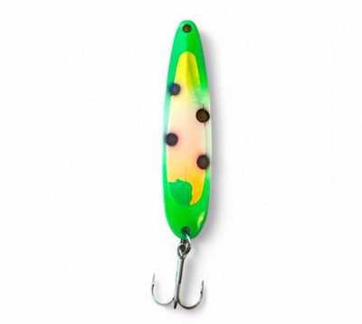 Every Standard and Magnum fishing spoon includes a treble hook and two split rings.